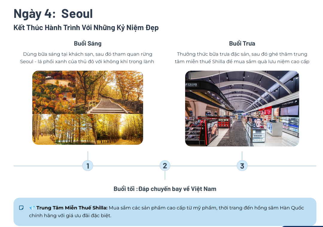 저녁: 베트남 신라 면세센터로 돌아가세요: 화장품, 패션부터 진짜 한국 홍삼까지 고급 상품을 특별 할인으로 쇼핑하세요.