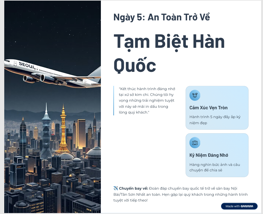 김치의 땅에서 잊지 못할 여정이 되셨습니다. 이 멋진 경험들이 여러분의 마음에 영원히 새겨지길 바랍니다.